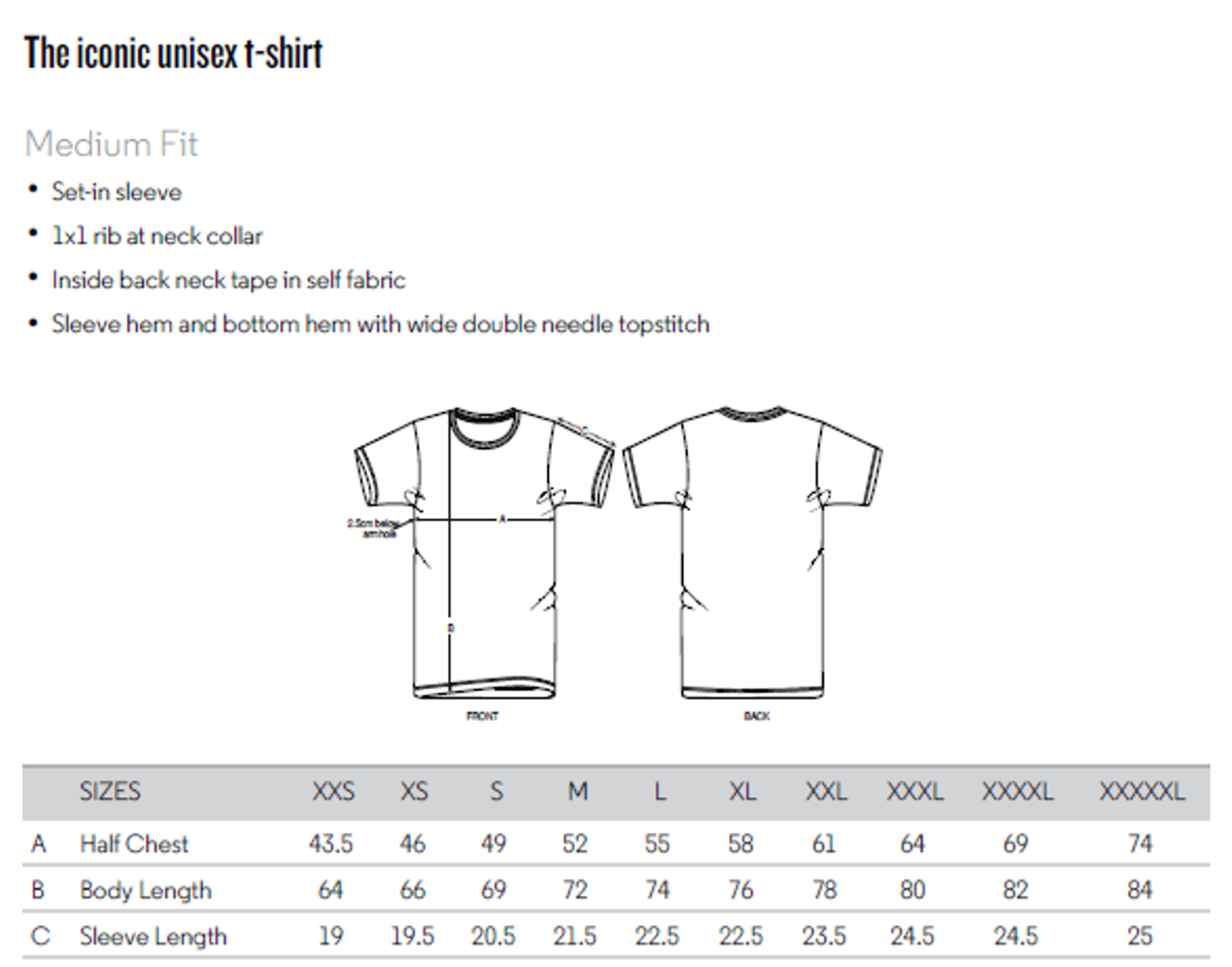 - Inside back neck tape in self-fabric.