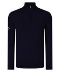 Ribbed shoulder ΒΌ contrast zip Merino sweater. Contrast or tonal embroidered Callaway Tour logo on the wearer's right sleeve and Chevron on the back neck. Oeko-Tex certified. Reach certified. WRAP certified.